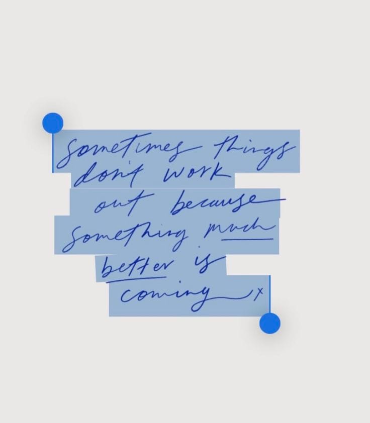 tradução: “às vezes, as coisas não dão certo porque algo muito melhor está por vir.”
