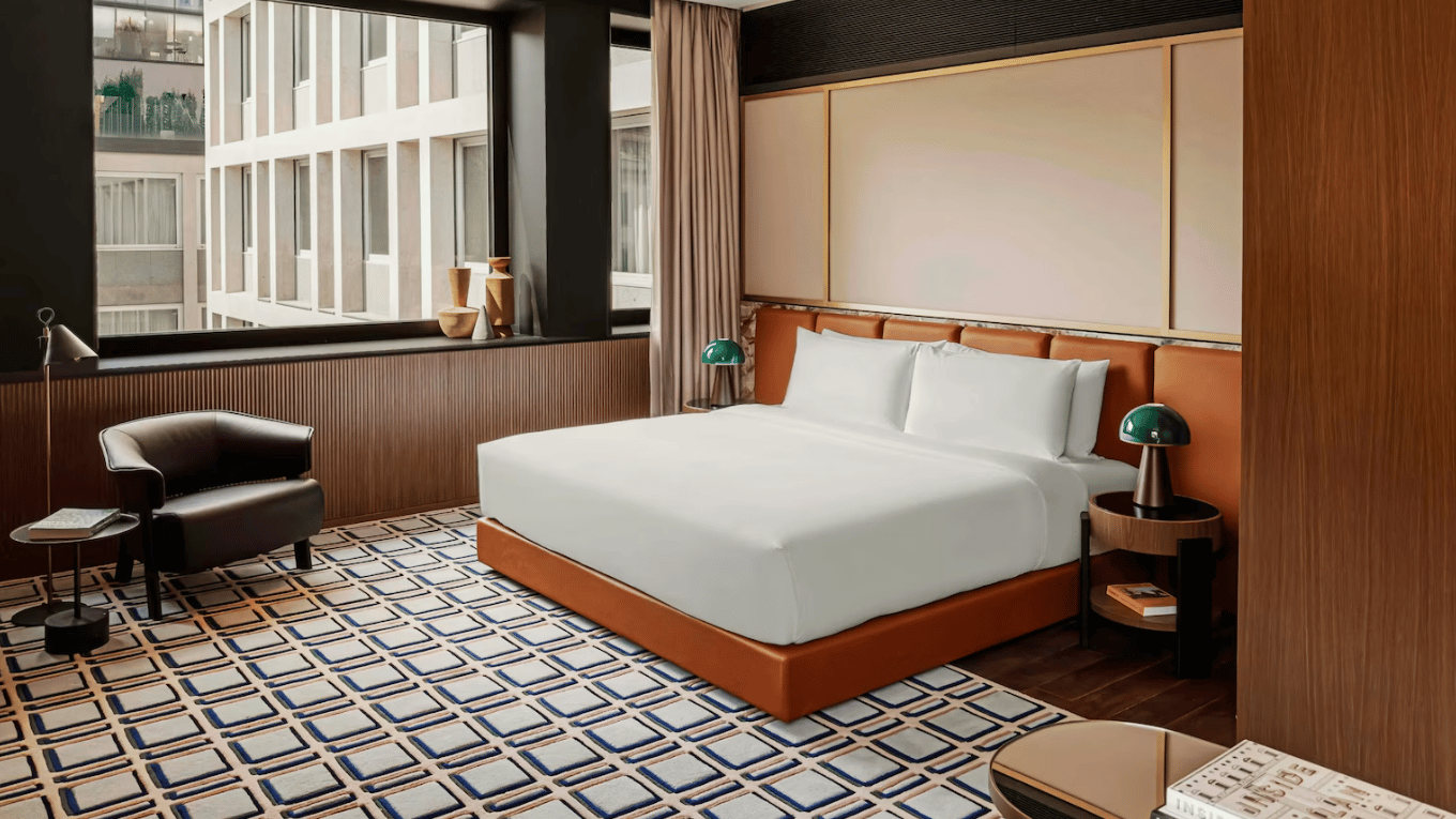 O projeto é, novamente, da Patricia Urquiola, uma das designers mais celebradas da Itália. No Casa Brera, ela traduz a elegância milanesa da cidade em 101 quartos e 15 suítes, com materiais regionais nobres em homenagem à história do edifício.