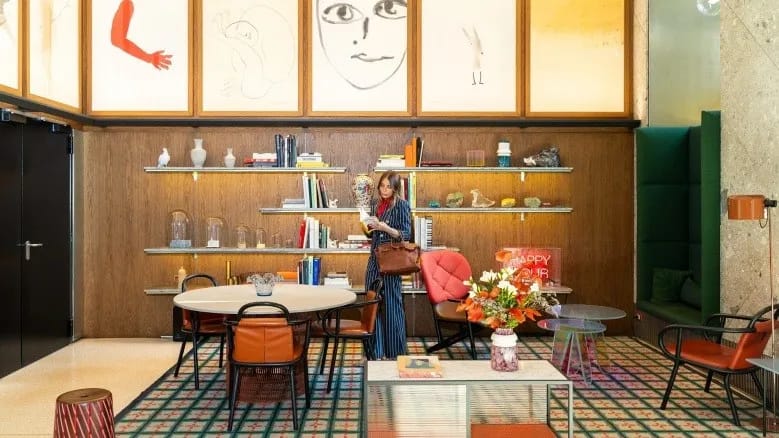 A decoração é assinada pela premiada arquiteta e designer Patricia Urquiola, inspirada nas casas milanesas dos anos sessenta, com móveis retrô em cores vibrantes e quartos aconchegantes.