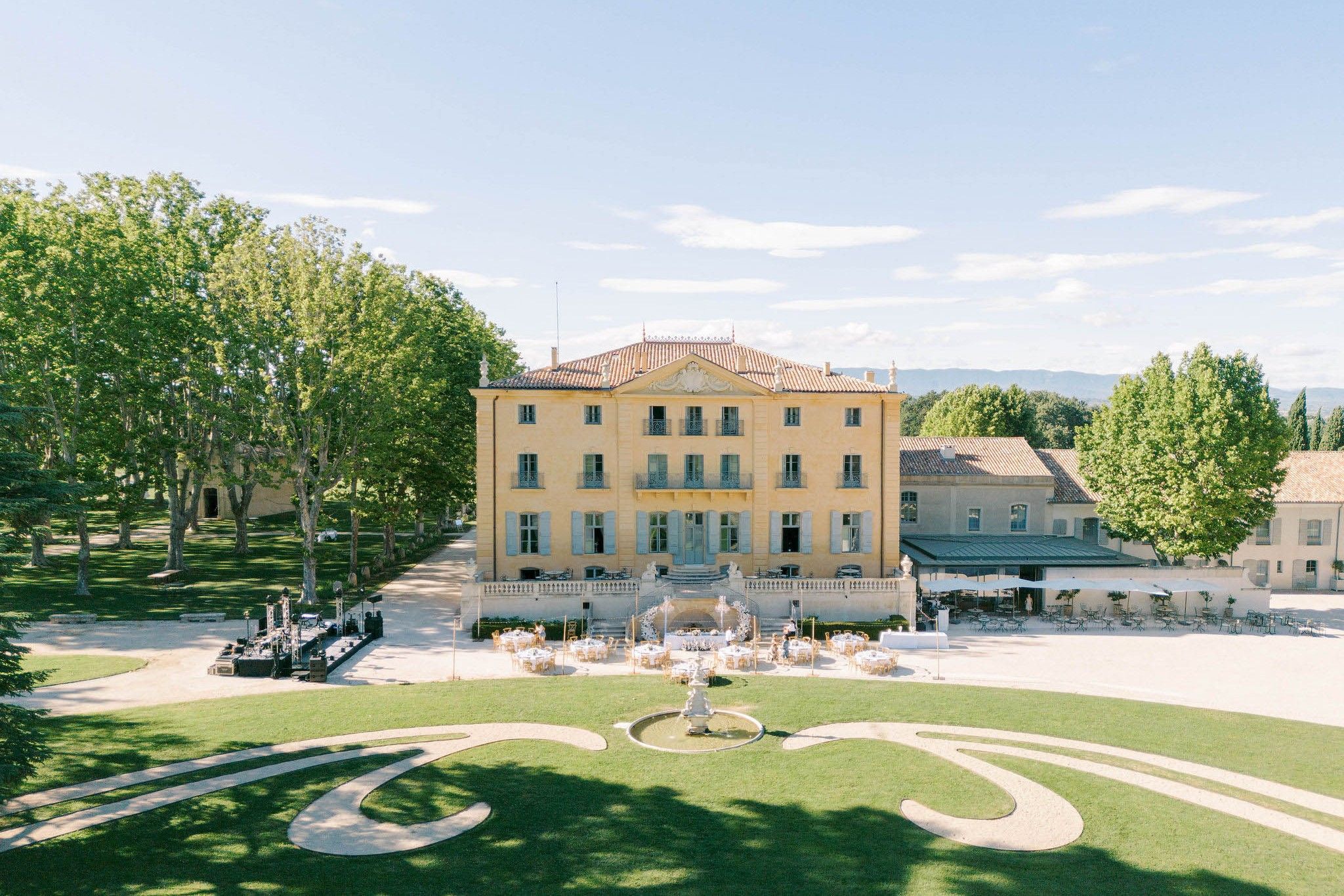 O hotel ocupa um château do século XVIII cercado de vinhedos e jardins, com piscina, restaurante com produtos da propriedade e uma atmosfera de interior provençal que parece de cinema.