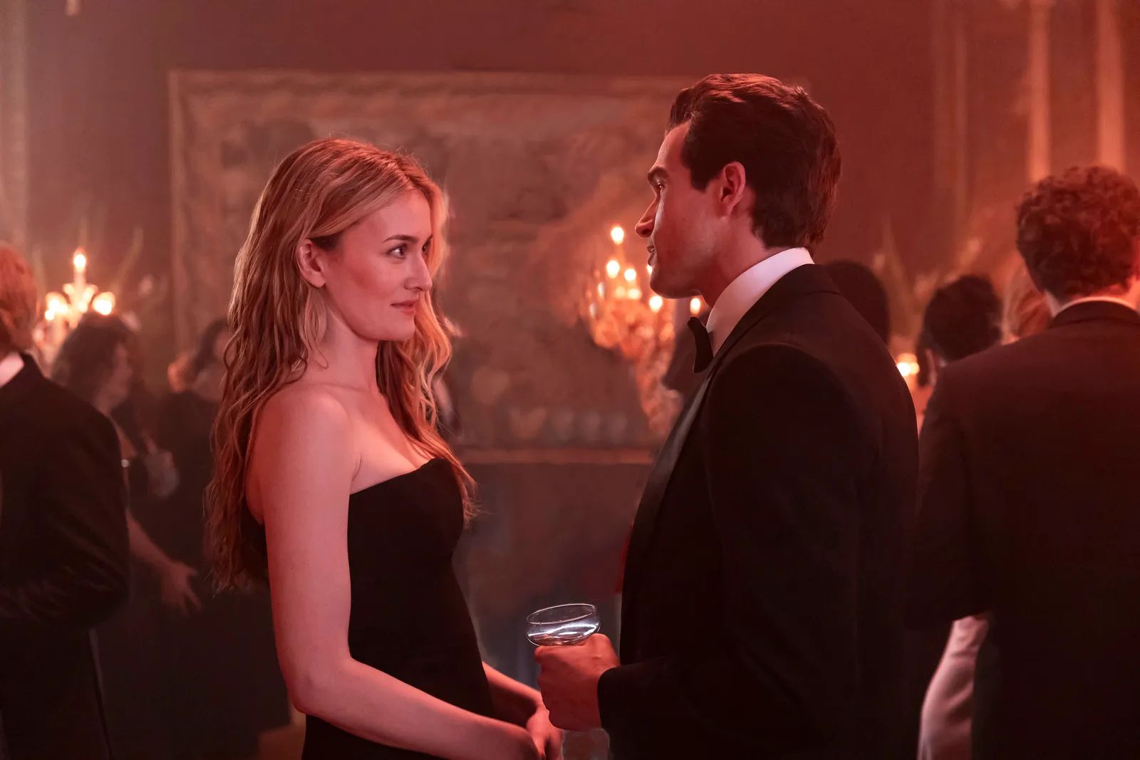 Entre luz baixa, taças de vinho e dress code impecável, o cenário traduz exatamente o tipo de glamour silencioso que marcou a Nova York daquela época: sofisticado, mas nunca óbvio.